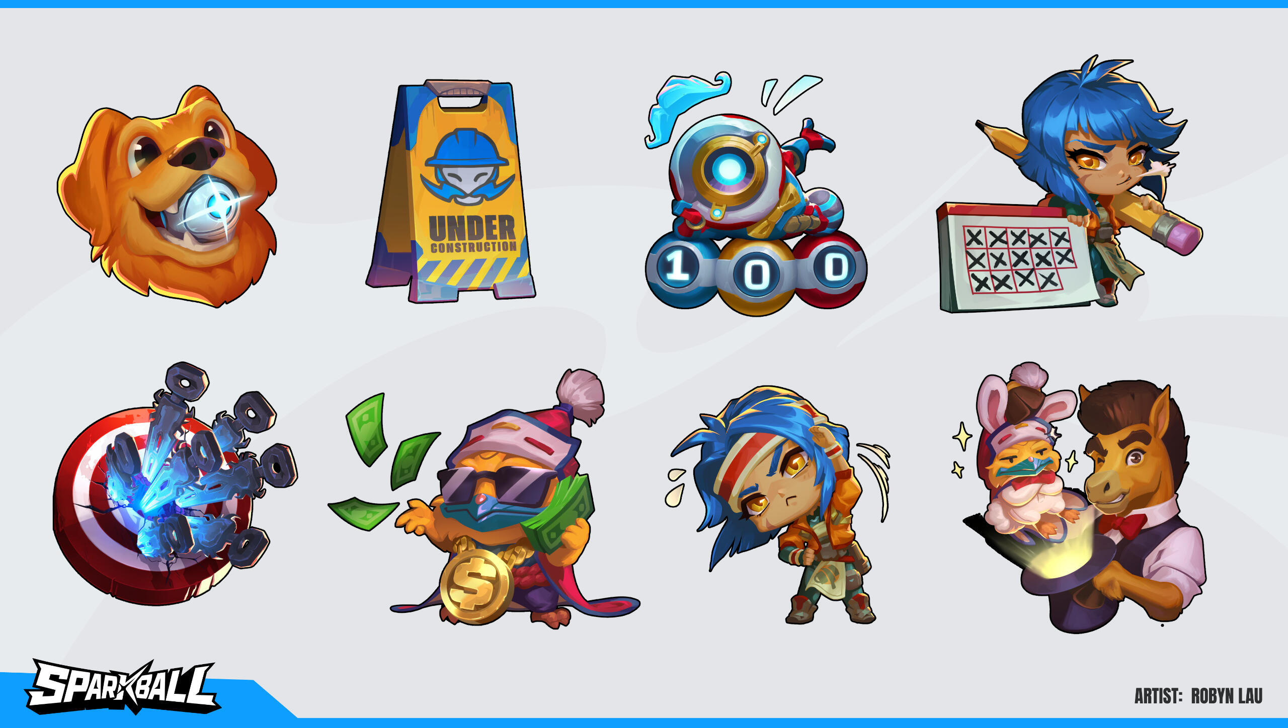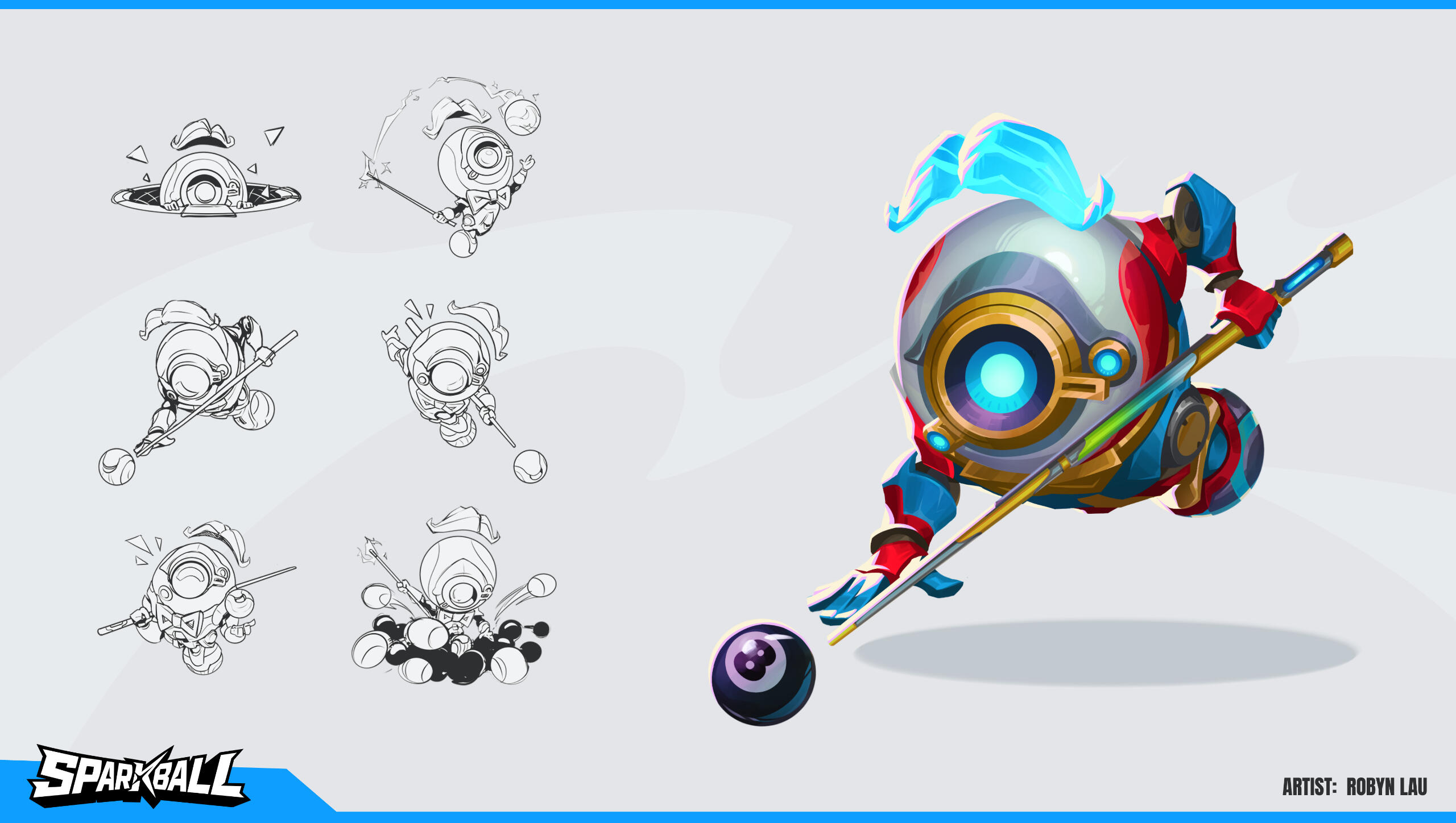 Sparkball was such a fantastic project for me - I really love the universe. Being part of a small team, I took on a flex role and helped with a variety of tasks including character design, splash art, sprays/emotes, website assets, UI, as well as assistance in Art Direction.