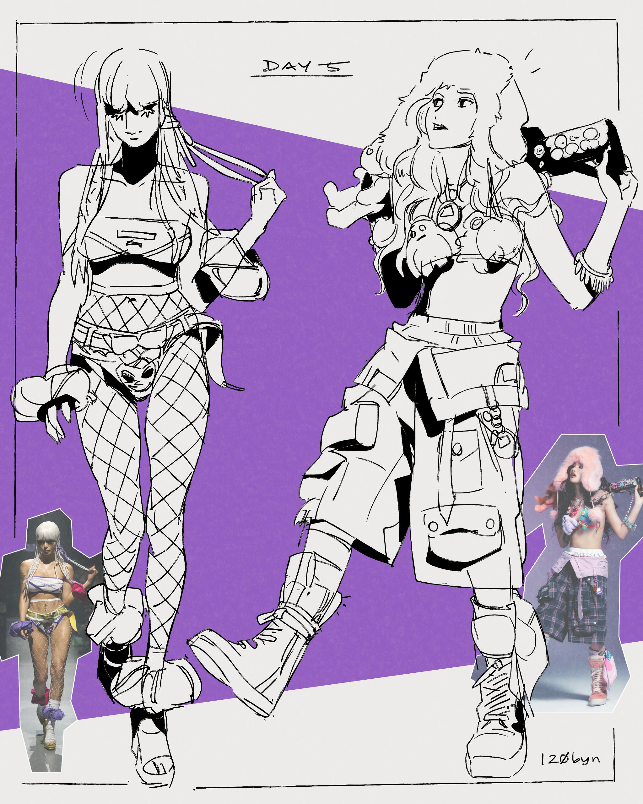 Melanie's team already had a strong idea on the stylistic direction for the figurine, so we tried to explore different body archetypes that still fit that aesthetic. The first draft of the figures were much smaller and cuter, closer to the aesthetic of other vinyl figures.