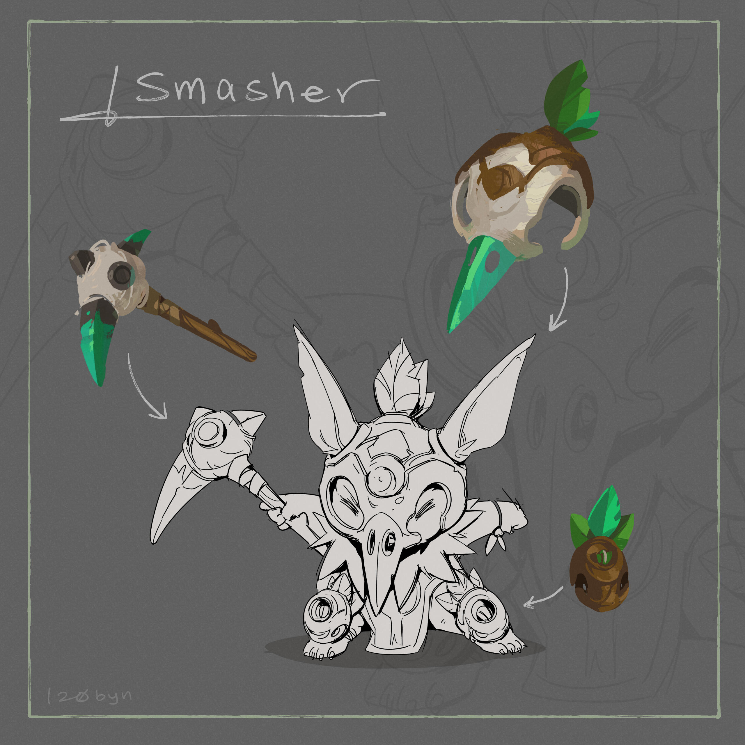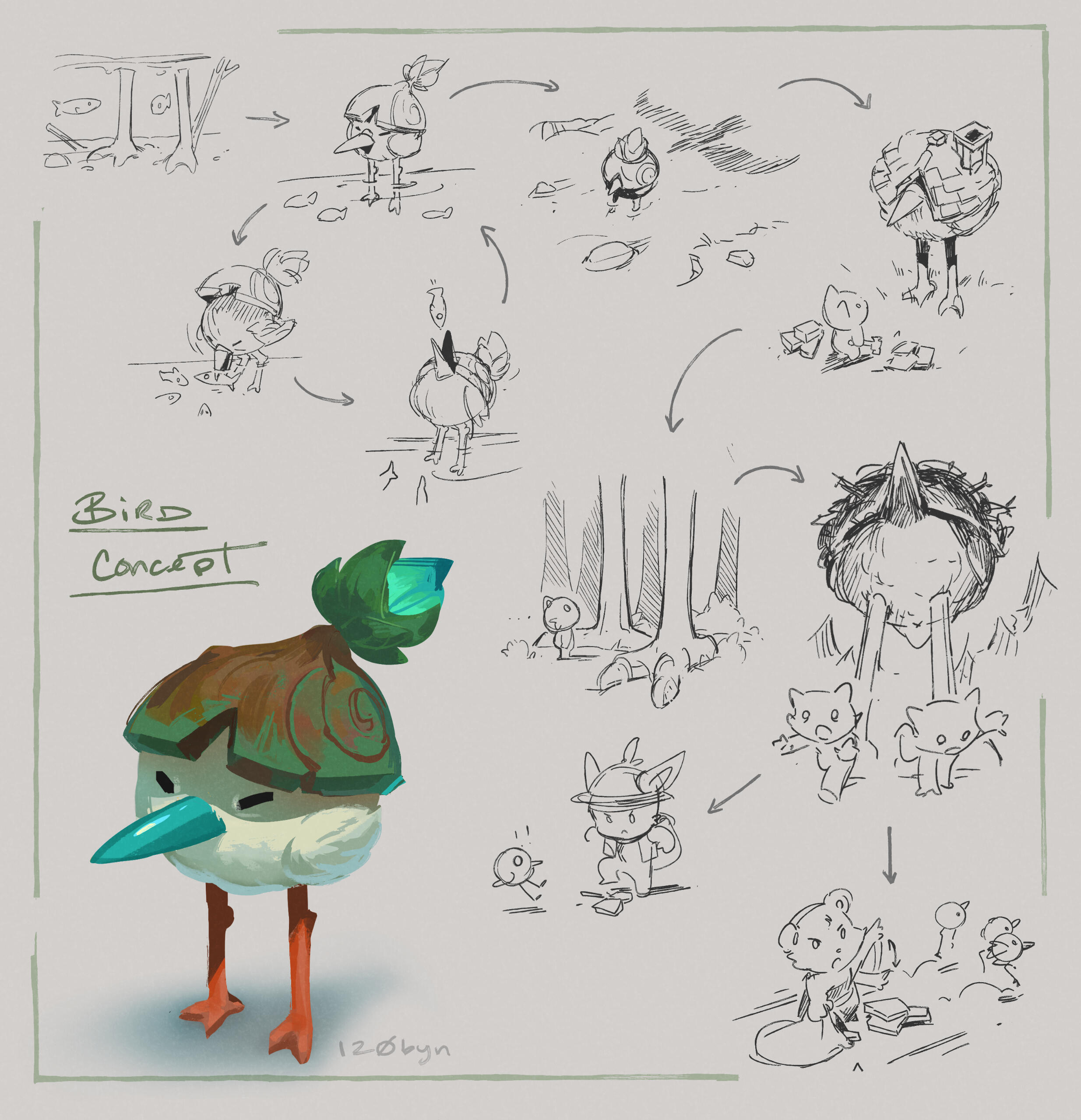 The idea is a bird who crafts hats out of nearby material to blend in and prevent it from being eaten by bigger predators.Legend has it there was a bird that got so big, the Yordles had a hard time taking it down.Going forward, if you find one of these hidden birds, please destroy their hats - we can't let them get too big again. But if they do get too big, packs of adventurers love hunting them for the amassed treasure trove above their head. :3