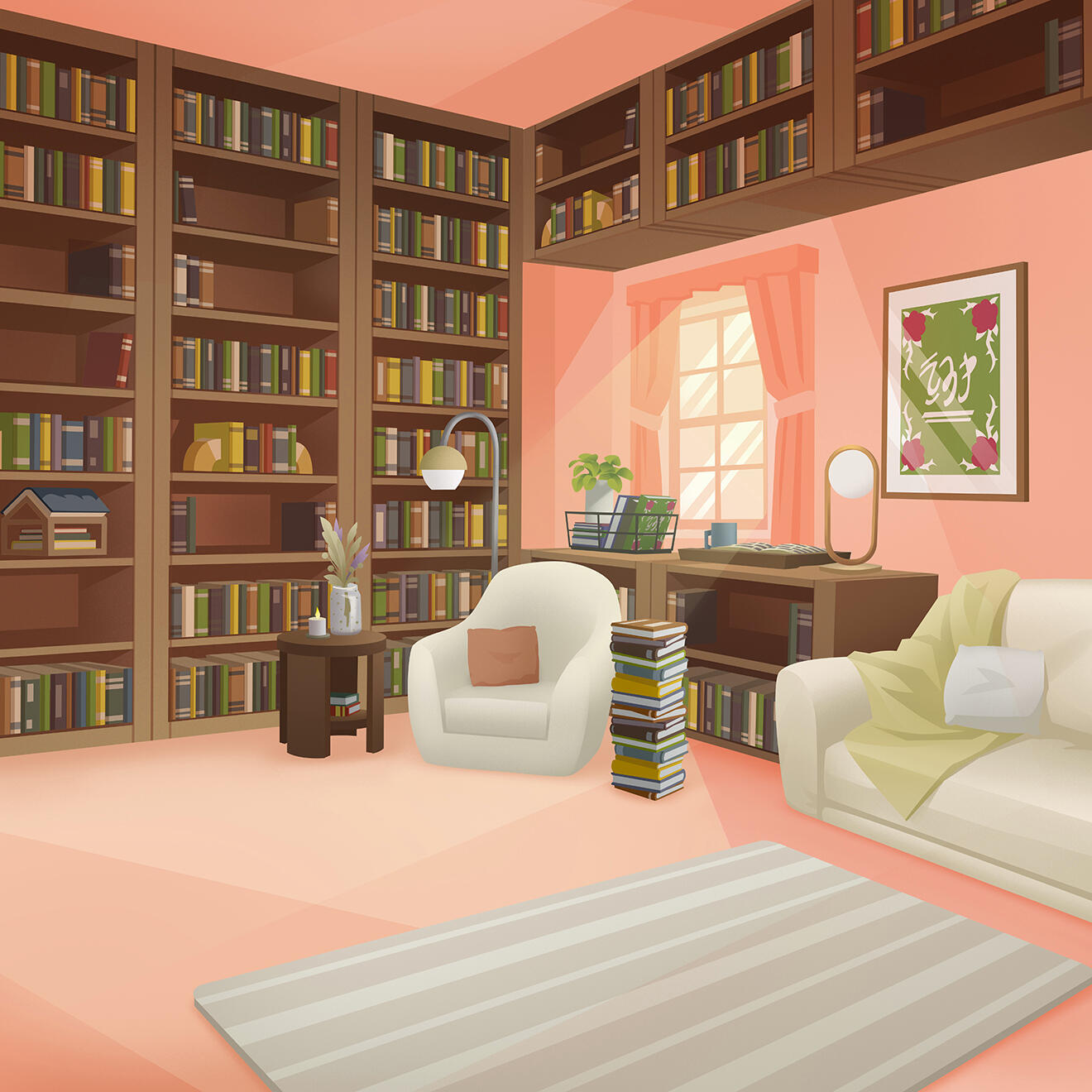 The complexity of this piece was almost the end of me.Everything needed to be built with vector shapes, so I made the shelves modular and created a few sets of book combinations as smart objects. This allows me to edit one file and have those changes save across all versions of that file so that revisions and tweaks were easier to make.The additional challenge was the perspective; even if I could fill the shelves on a large scale, each shelf—depending on its height—has different visibility for the top or sides of the books. The perspective was cheated a bit and handled at a shelf-by-shelf basis, re-using shapes where I could.