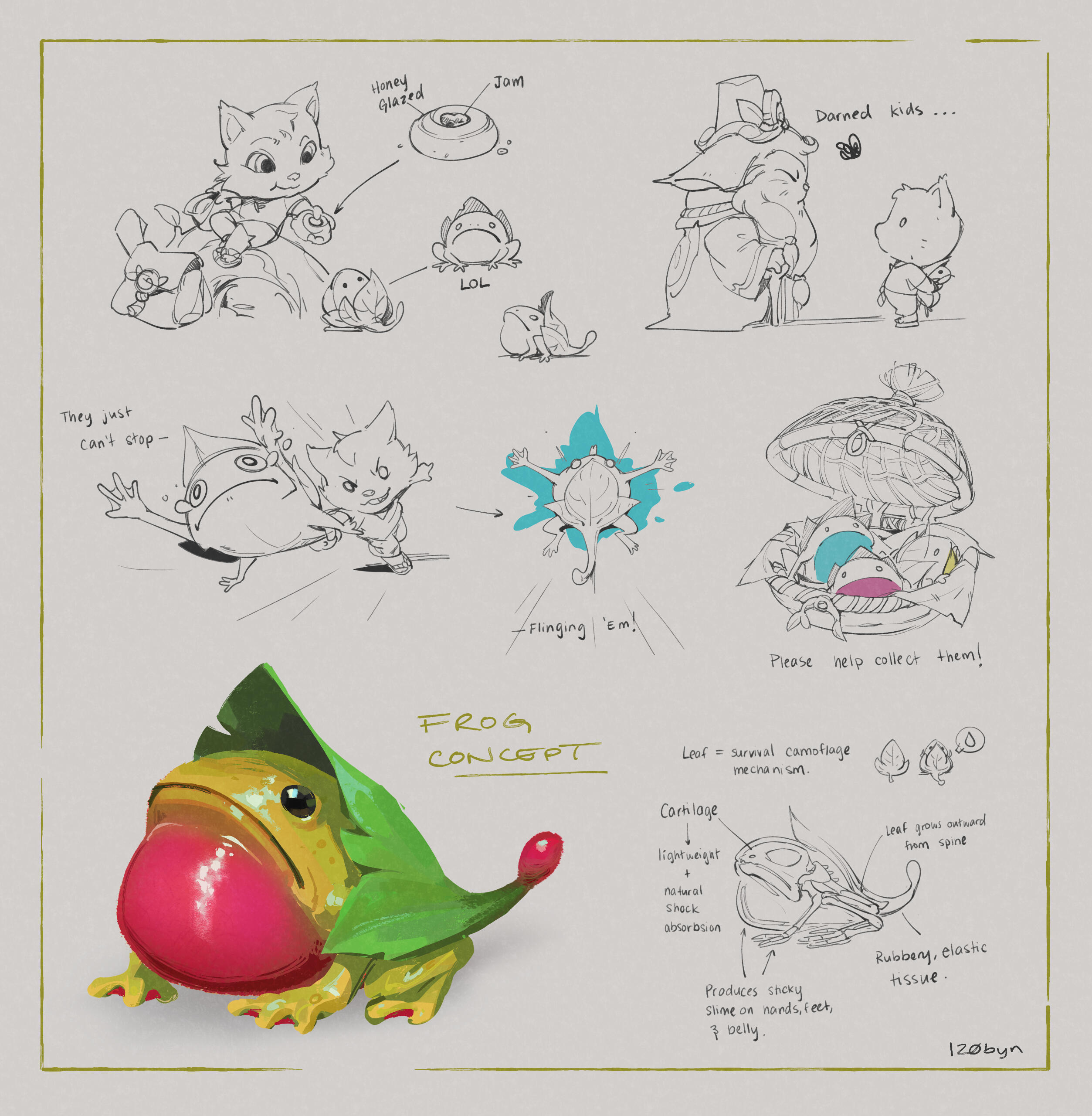 I love the idea of young yordles just being super annoying with these frogs. Flinging them everywhere. You could see a bunch of them stuck up somewhere high.They also leave little slime splatters - a bit of a colorful mess.The frogs are super squishy and don't actually get hurt. Sometimes you might walk by a group of kids and catch a stray. >:3